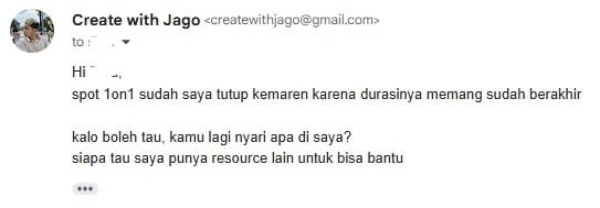 beliau ini ternyata reply email lama saya — dimana saya kasih offer 1on1
